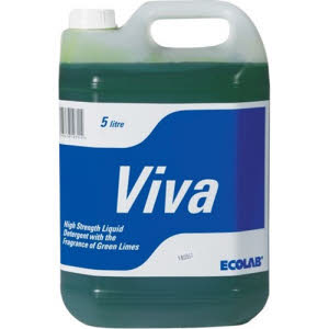EcoLab All Purpose Viva Detergent Cleaner is a multi-purpose neutral liquid detergent safe for all washable surfaces. Its blend of anionic surfactants will rapidly degrease foodservice surfaces, as well as pots and pans. It will cope well with any water hardness condition, its pleasant lime fragrance will improve working conditions for staff in the kitchen.