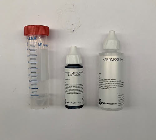 1 x 30 ml Plastic Tube, 1 x Raw Water Hardness Sol'n - 30 ml, 1 x Hardness TH4 - 65mL and instructions in small cardboard box.